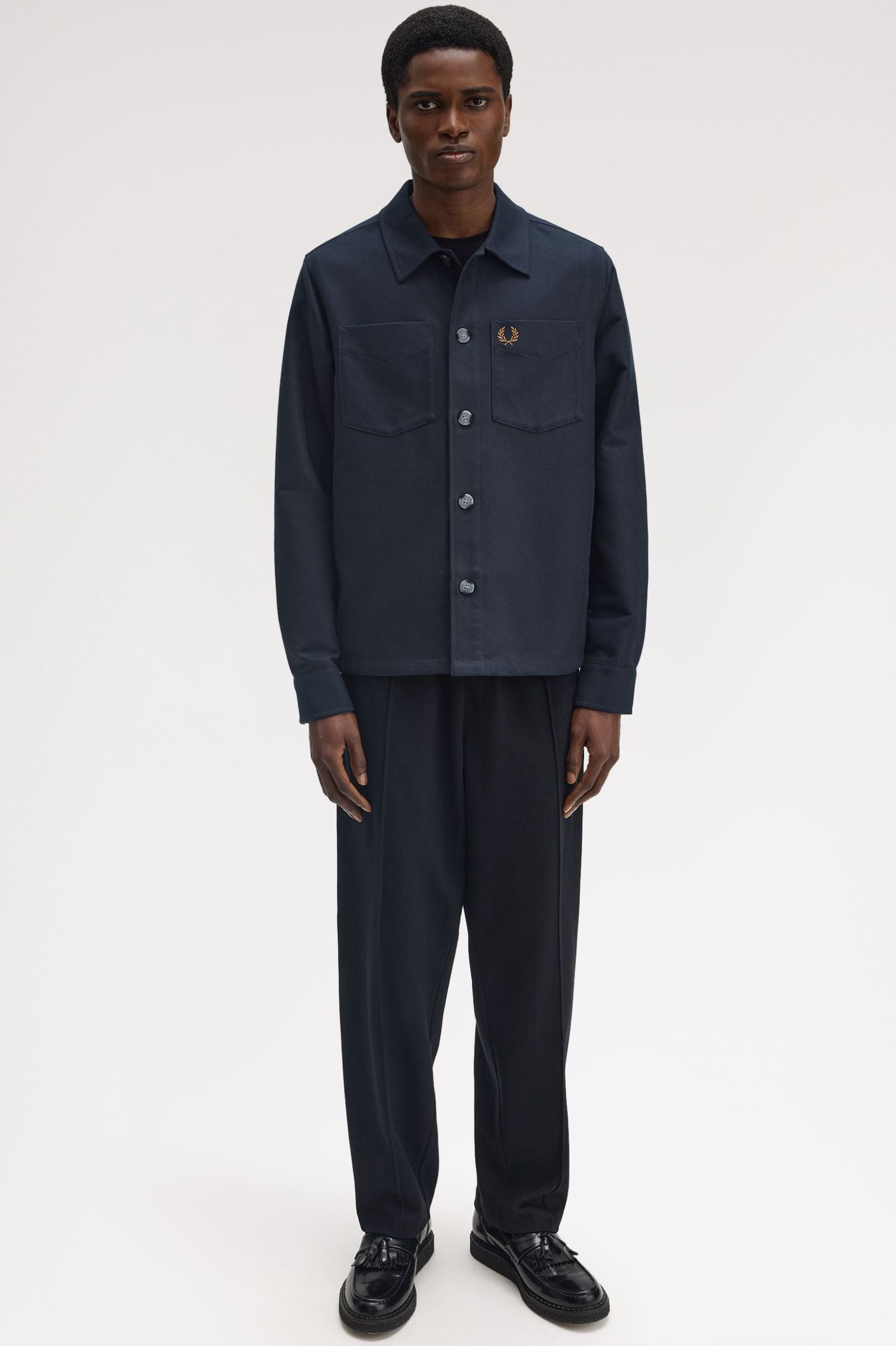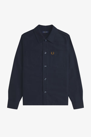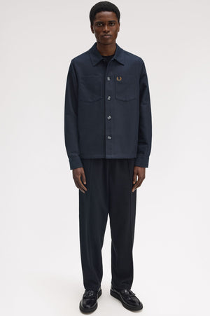 A heavyweight cotton twill overlayer with patch pockets and mock horn buttons. Heavy cotton twill fabric/Regular fit/Full button placket/Patch pockets with twill lining/Laurel Wreath embroidered logo on the left hand chest