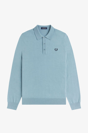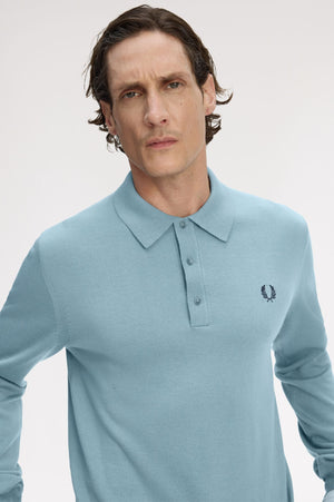 Cotton and RWS merino wool blend knit / Regular fit / Three button placket with high polish buttons / Ribbed trims / Laurel Wreath embroidered logo on the left hand chest
