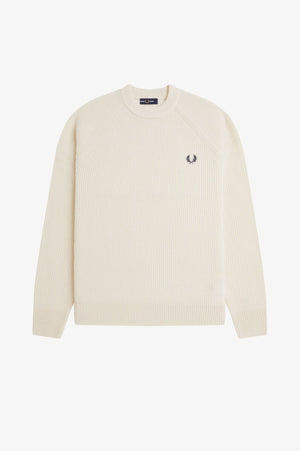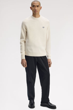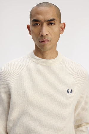 A lambswool knitted jumperwith a textured knit throughout. RWS lambswool knit/Regular fit/Crew neck/Raglan sleeve/Embroidered Laurel Wreath logo to the left hand chest