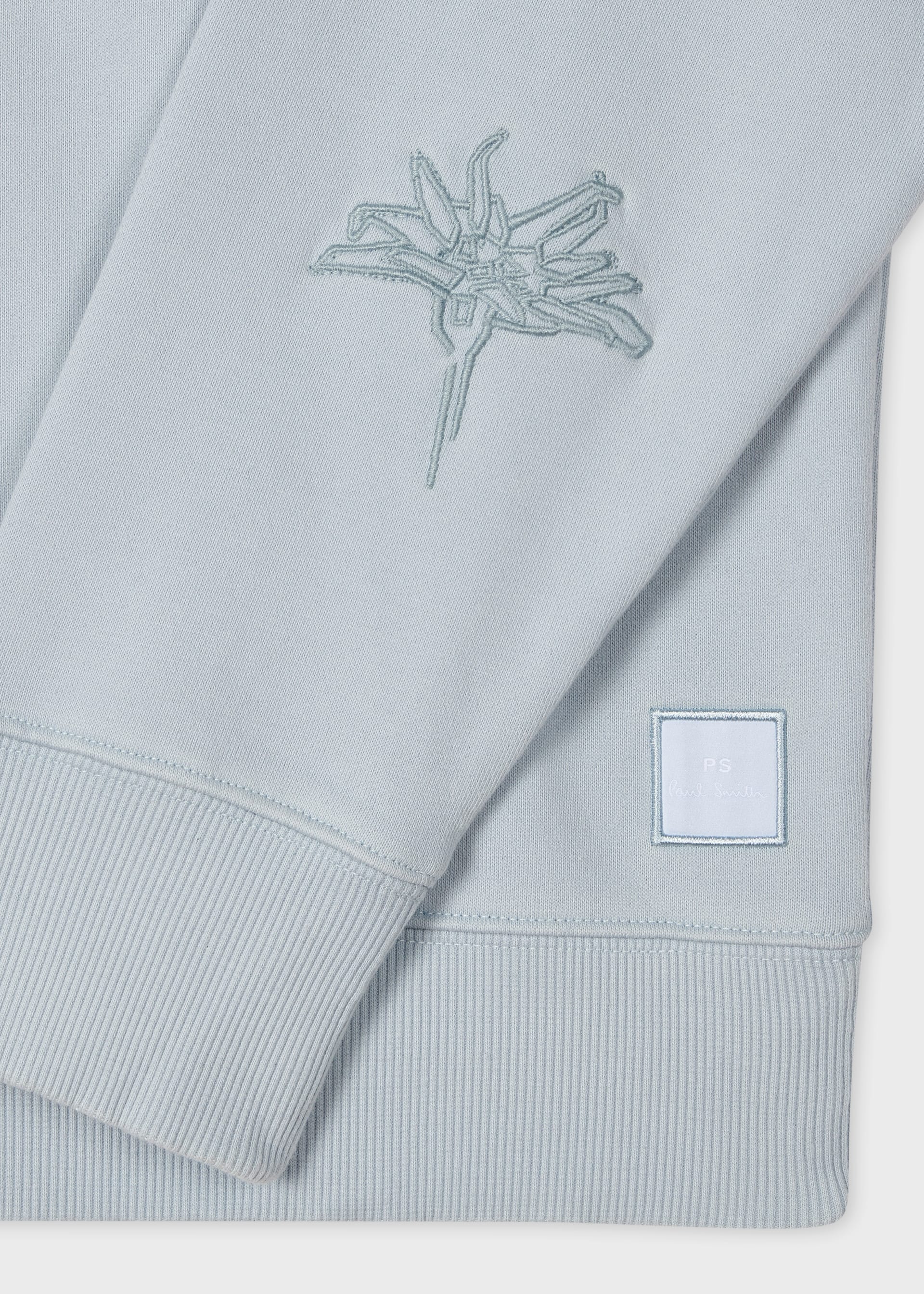 Made from 100% loopback organic cotton jersey, this light blue sweatshirt features a zip neck design with point collar. Dyed using natural food and botanical plant derived dyes - this sweatshirt is finished with an embroidered 'Edelweiss' motif on the sleeve.