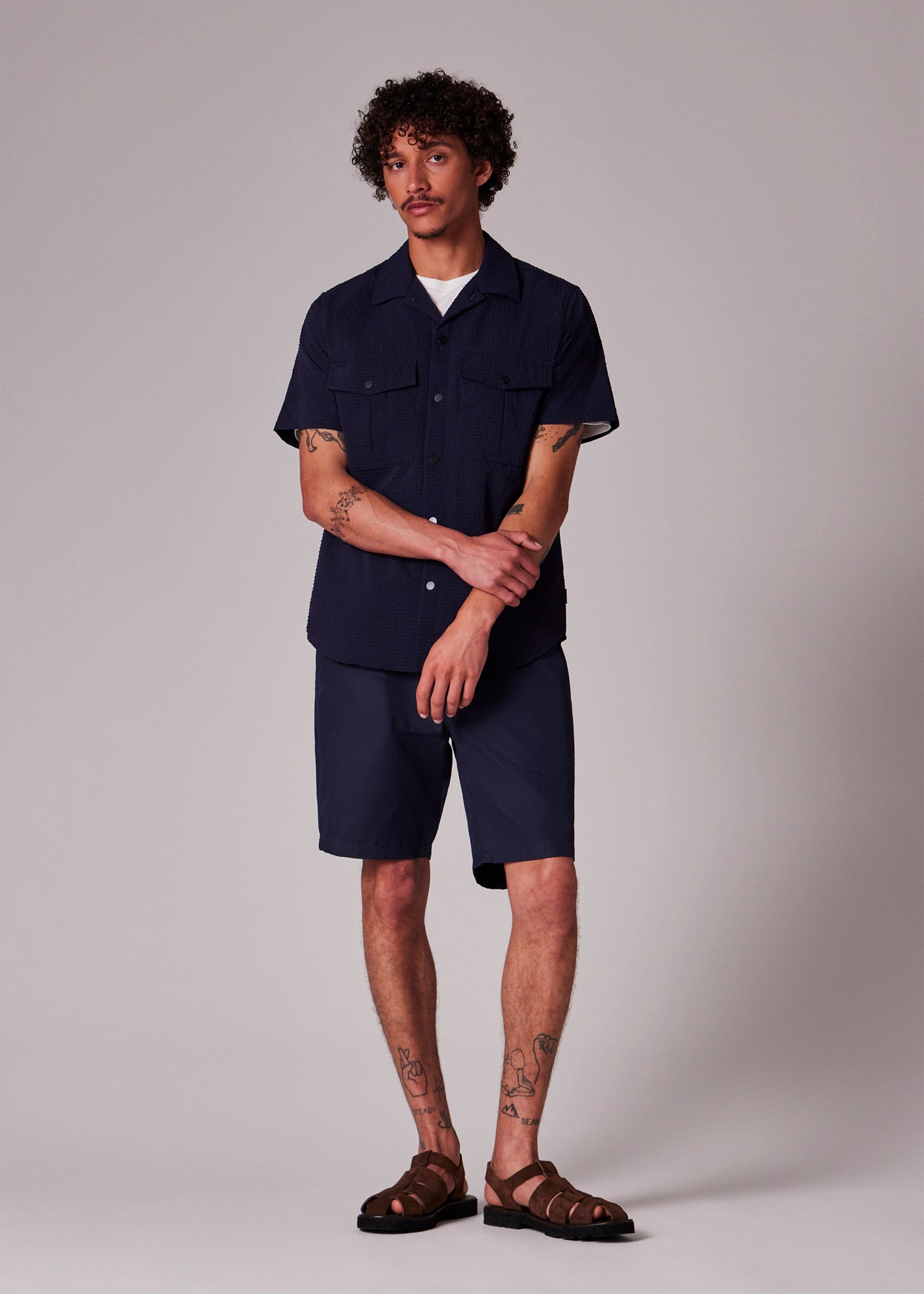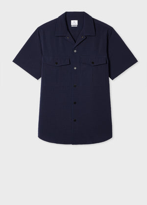 Made from a lightweight seersucker cloth with a textured finish and added stretch, this navy short-sleeve shirt offers both style and comfort. Featuring a classic casual fit, this versatile shirt is ideal for warm weather dressing. Finished with press-stud fastening and two chest pockets for added practicality.