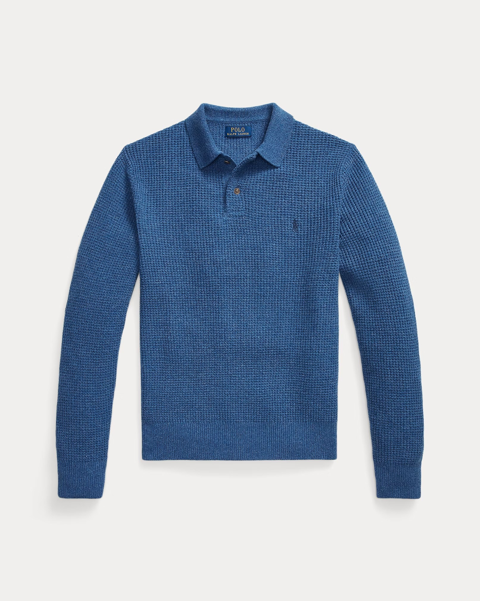 With a silhouette inspired by our long-sleeve Polo shirt, this jumper unites soft wool-and-cotton yarn with a textured waffle-knit technique.
