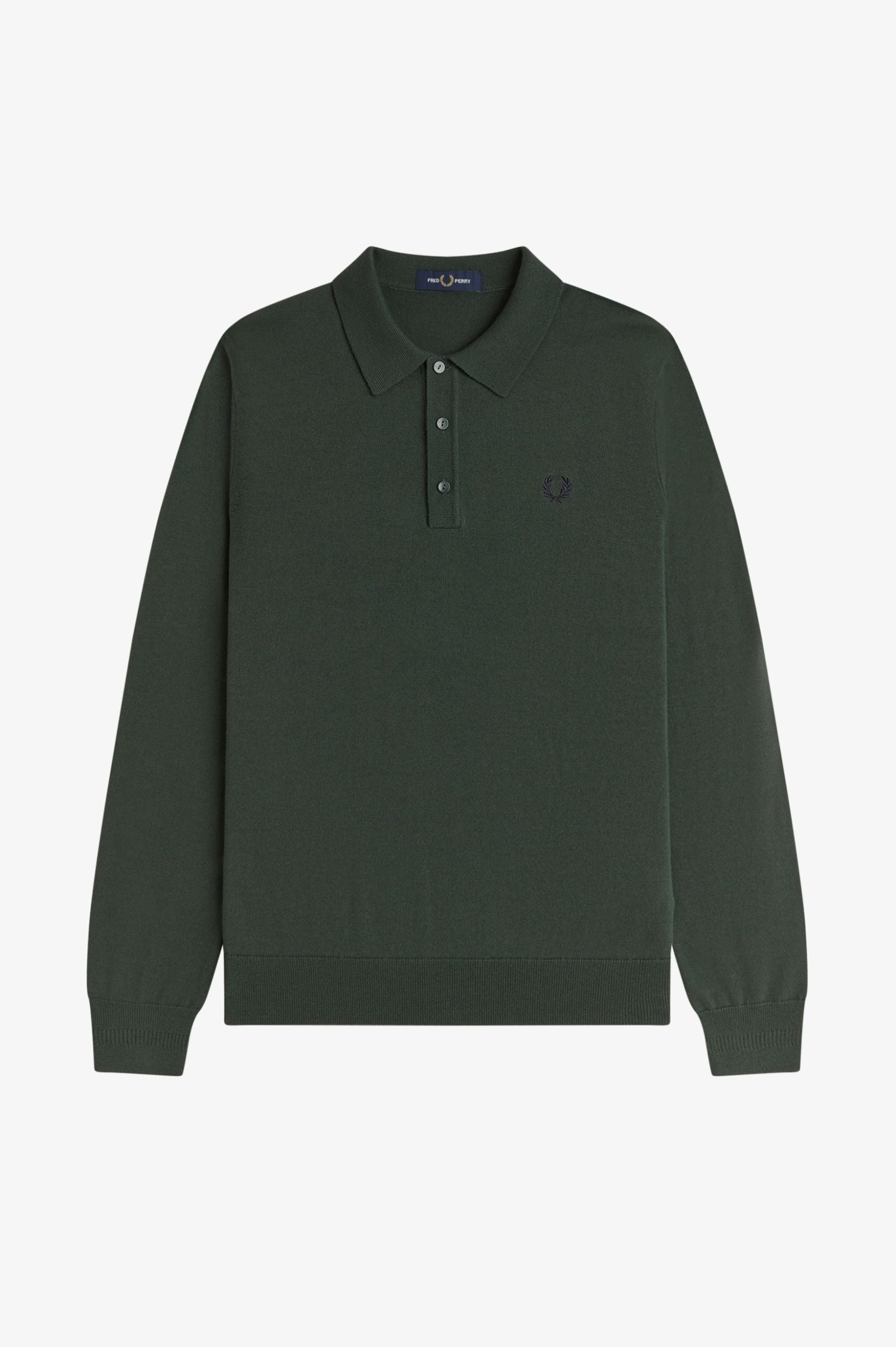 Classic Knitted Shirt Long Sleeve Polo - Dark Green