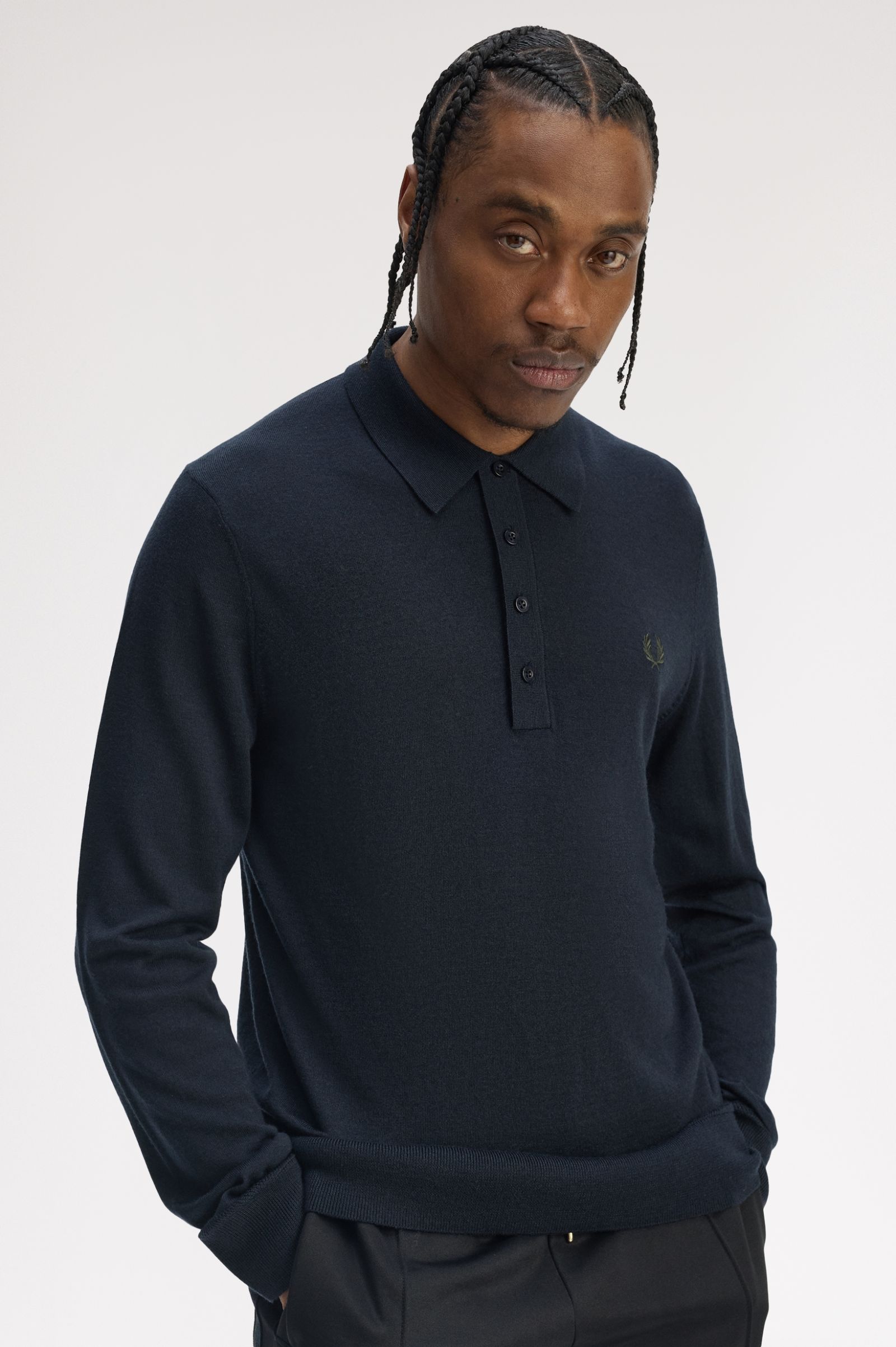 Finely knit shirting in a merino wool blend with a cool, dry hand feel. Merino wool and acetate blend knit/Regular fit/Embroidered Laurel Wreath logo to the left hand chest/Stitch detail to cuff and hem