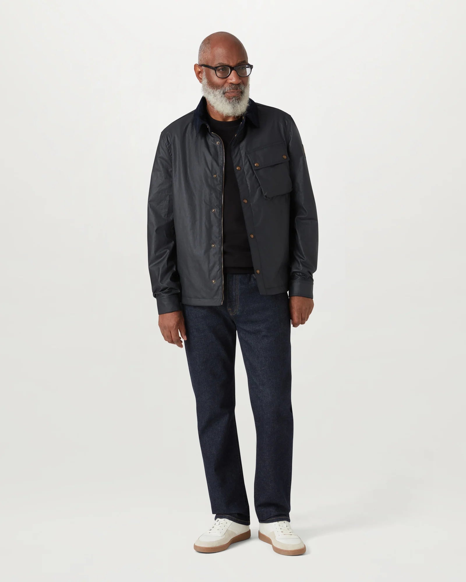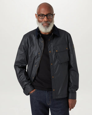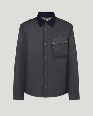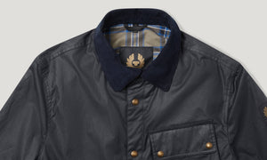 Meet the Ground jacket in dark navy with a stylish corduroy collar. It offers instant warmth and protection with 6oz. British Millerain waxed cotton, which is water and wind repellent. Inside features a cotton twill lining woven in the signature Belstaff checked pattern, angled moto inspired chest pocket and snap adjustable cuffs with antique brass hardware