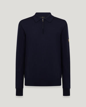 Meet the Dark Ink Kyle polo. This essential piece is crafted from 12-gauge extra-fine merino wool, which has incredibly fine fibers, making it exceptionally soft and gentle to wear. A classic polo cut with a modern zip finish at the neckline.