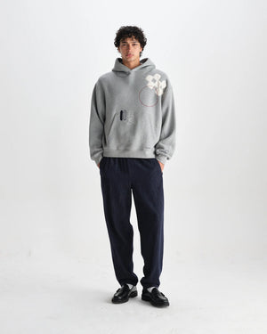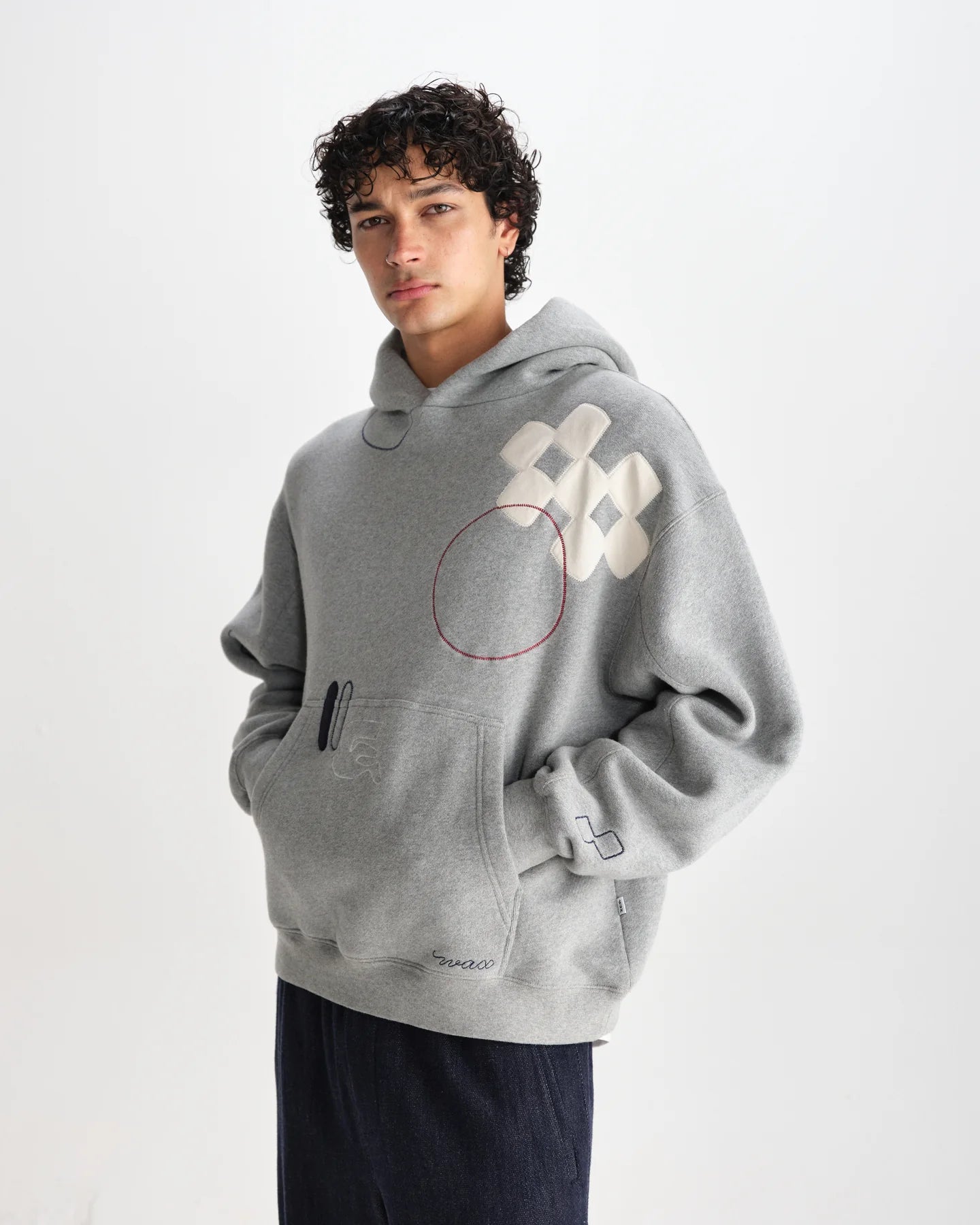 Introducing the Rydal hoodie, a standout sweat in our collection. Cut for a relaxed fit that sits neatly at the waist, it’s made from an ultra-heavyweight 520gsm brushed loopback cotton for a premium feel. The one-piece hood construction adds structure and comfort, while bespoke multicolour appliqué and embroidered doodle designs bring bold Wax personality to its grey base. This hoodie comes up big, go down a size for a better fit