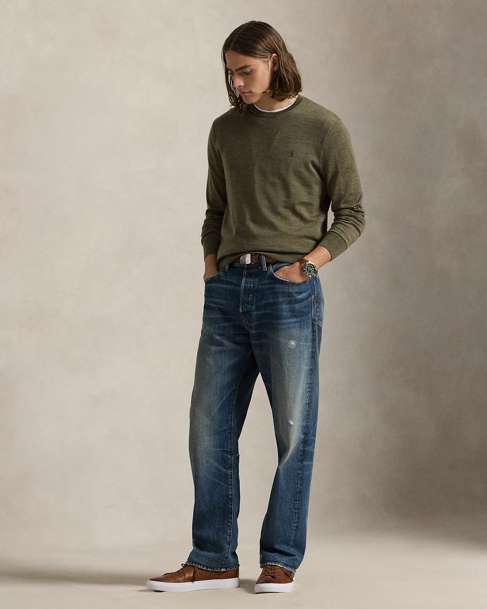 Finished with Ralph's signature embroidered Pony, this lightweight jumper is finely knit with wool yarn from Italy that is machine washable and worsted for a smooth texture