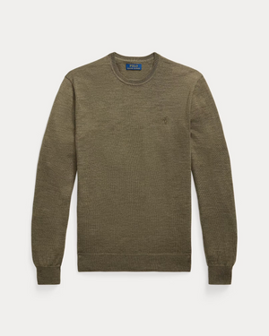 Slim Fit Washable Wool Crewneck Jumper -Olive Heather
