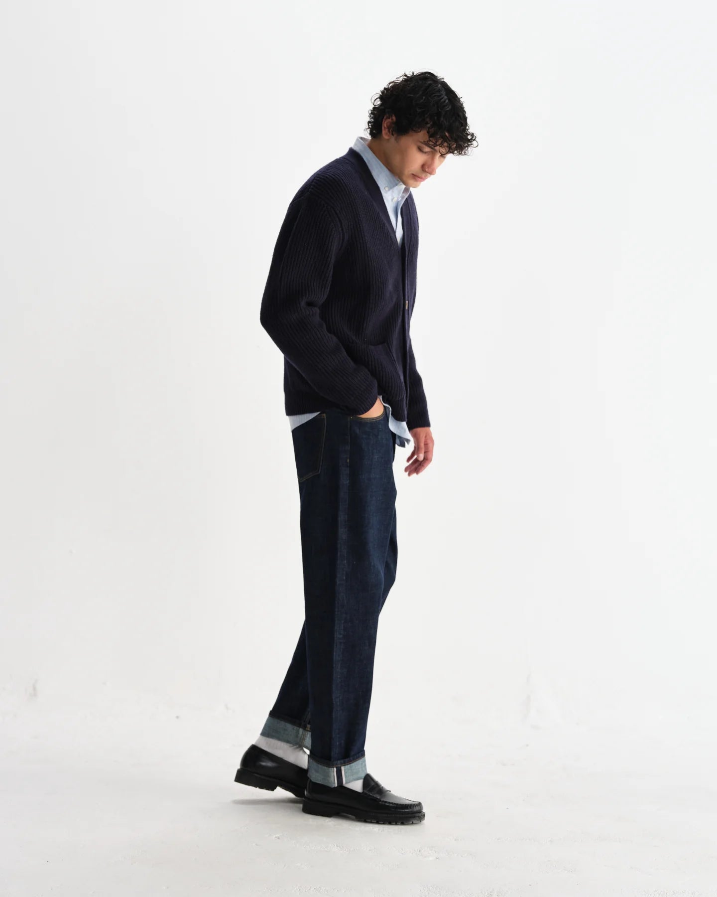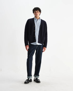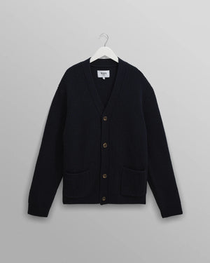The chunky Walker returns - now better than ever. Cut in a relaxed fit with a classic v-neck cardigan silhouette, it’s crafted from a warm wool blend in a classic navy rib stitch design. Finished with two front patch pockets and ribbed trims at the collar, hem, and cuffs