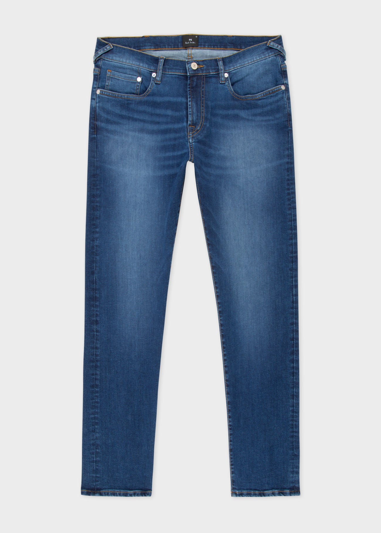 These jeans have a blue-wash finish for a timeless appearance and are constructed from stretchy 12 oz. cotton-blend "Organic Reflex" denim.