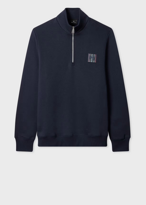 Made from a cotton and polyester-blend, this navy sweatshirt features a zip funnel neck and embroidered 'Stitch Stripe' logo on the chest. Cut for a regular-fit, this sweatshirt is finished with ribbed cuffs and waistband.
