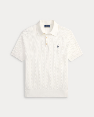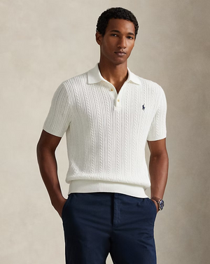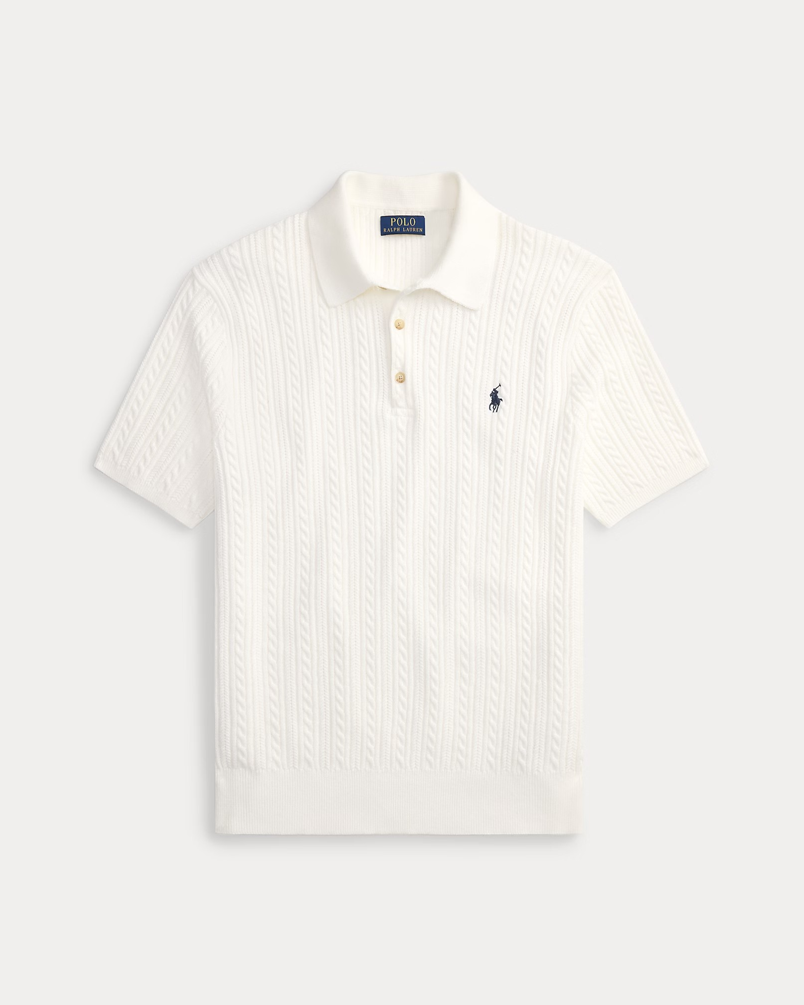 This cable-knit jumper combines a silhouette inspired by Ralph Lauren’s timeless Polo shirt with featherweight cotton yarn, which is combed with fine brushes, resulting in a softer, more durable garment.