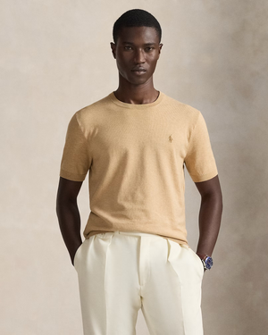 To create this layer, we reinterpreted the clean-lined silhouette of a T-shirt with combed cotton yarn and a sophisticated fine-knit construction. Our signature embroidered Pony on the left chest adds a distinctive finish.