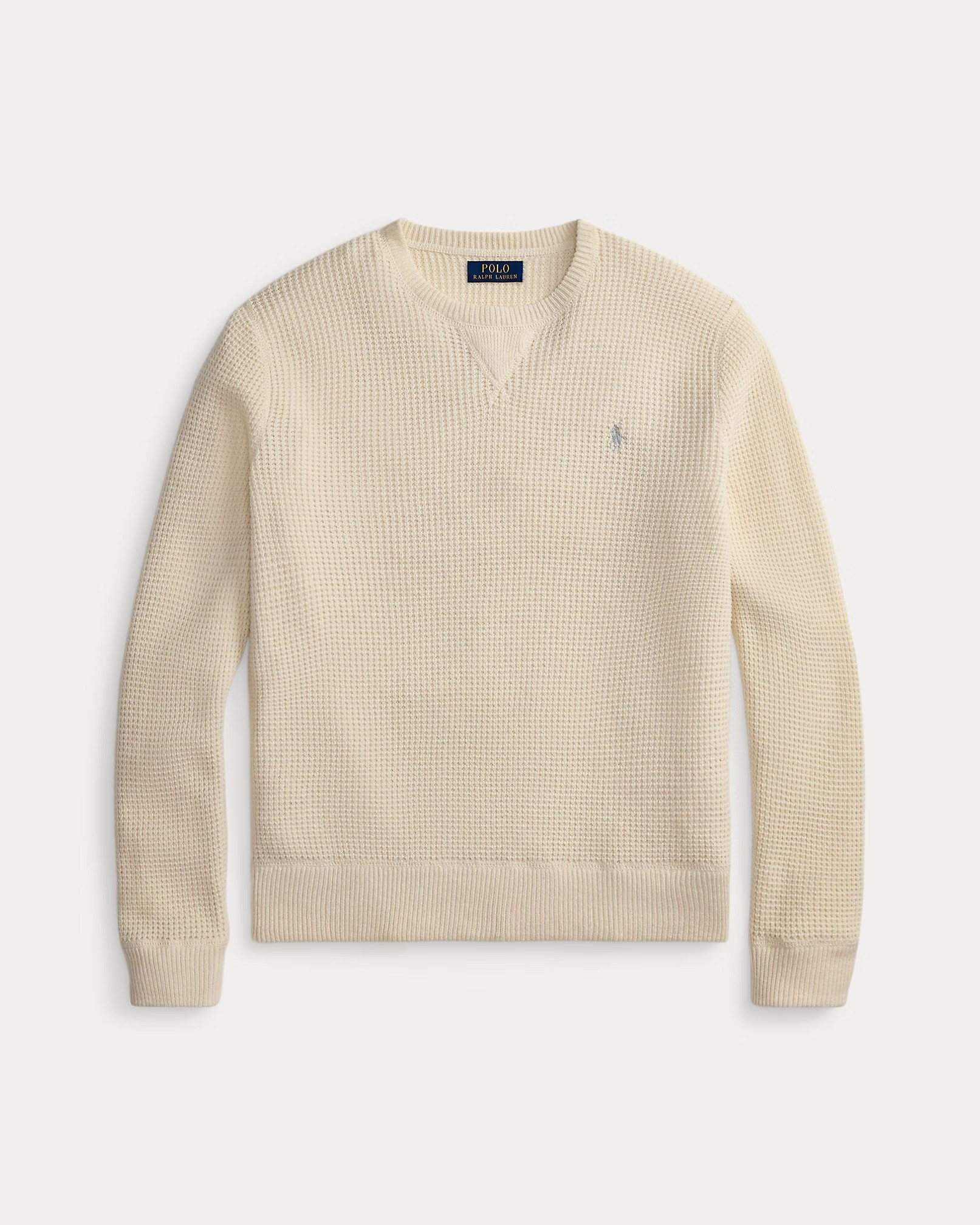 With a silhouette inspired by athletic crewnecks, this jumper unites soft wool-and-cotton yarn with a waffle-knit technique to create a plush texture. It is intricately embroidered with the iconic Polo Pony on the left chest.